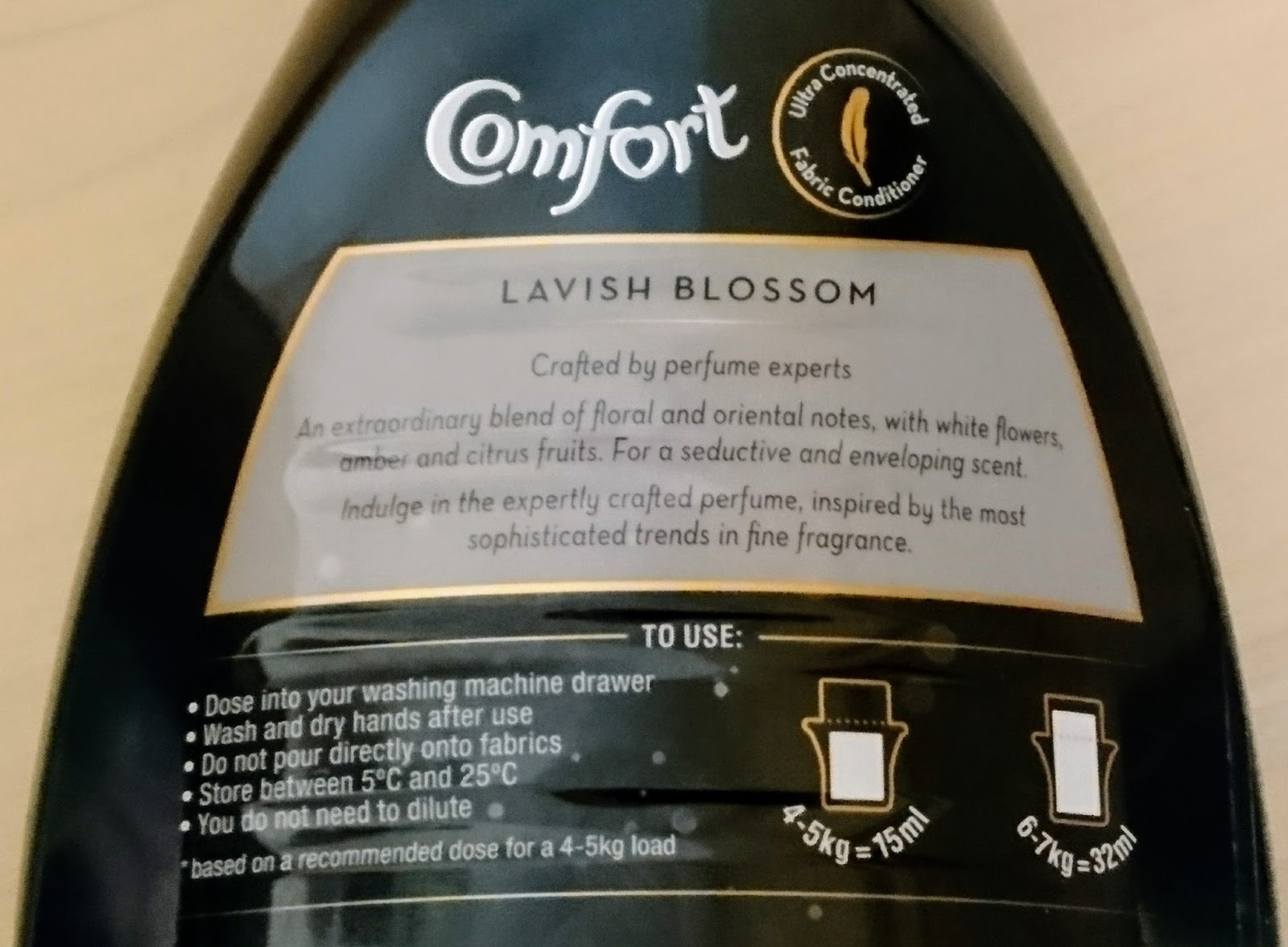 I used the fabric conditioner in my weekly wash. One 870ml bottle can do 58 washes and, as it is ultra-concentrated, a little goes a long way! Comfort recommend that you add the product to your washing machine drawer rather than in the drum and suggest that one 15ml dose will suffice for a 4-5kg load whereas a 32ml dose is better suited to a 6-7kg load.