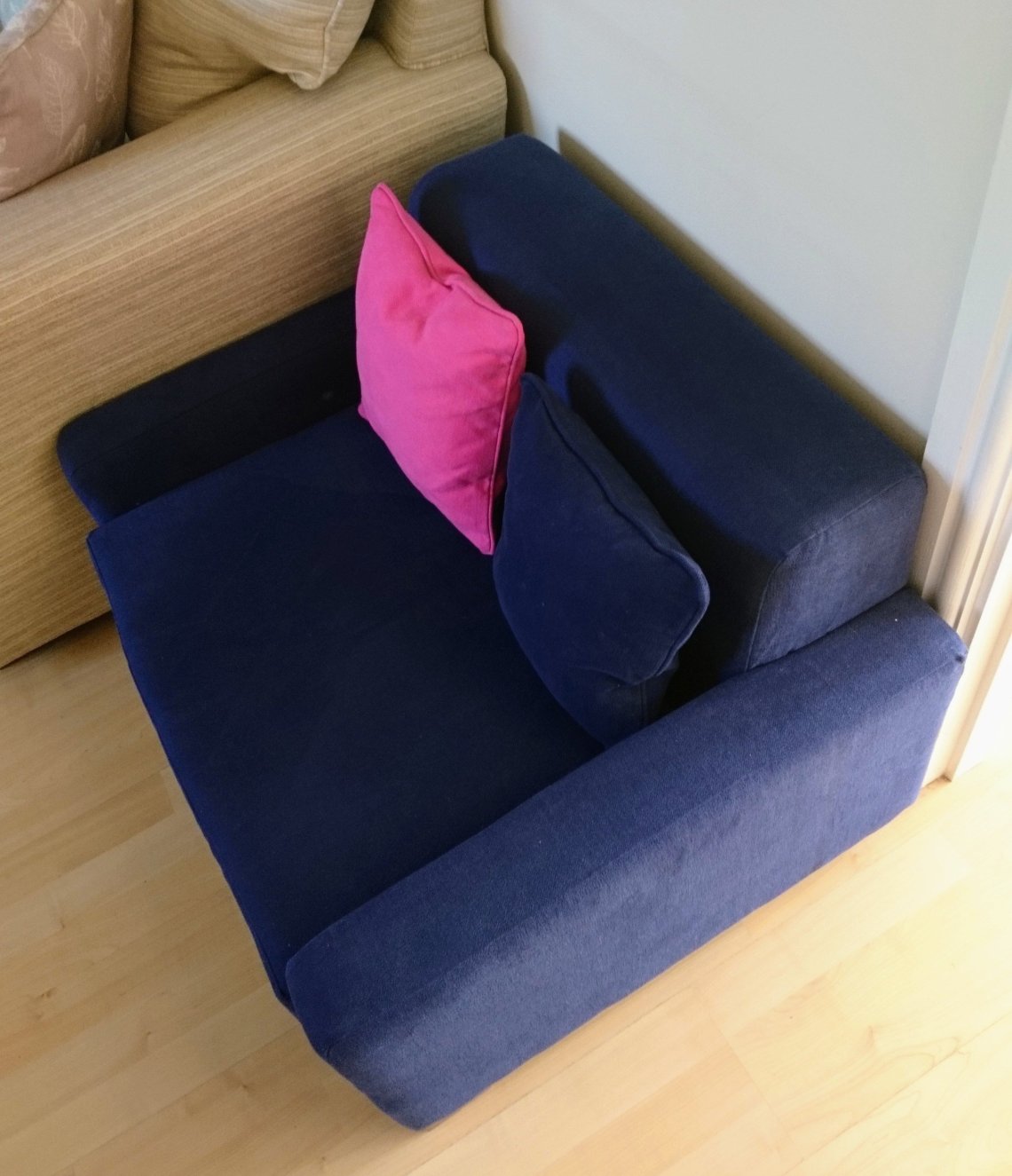 As the seat is smaller than usual sofas, Bubba was able to pull herself up on it and she enjoyed snuggling the soft fabric and cushions.