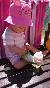 Babies can be fiercely independent and determined to practise the new skills they’ve learnt themselves. One milestone we have recently reached is trying to drink from a cup and we have enjoyed lots of smiles and spills in the sunny weather.