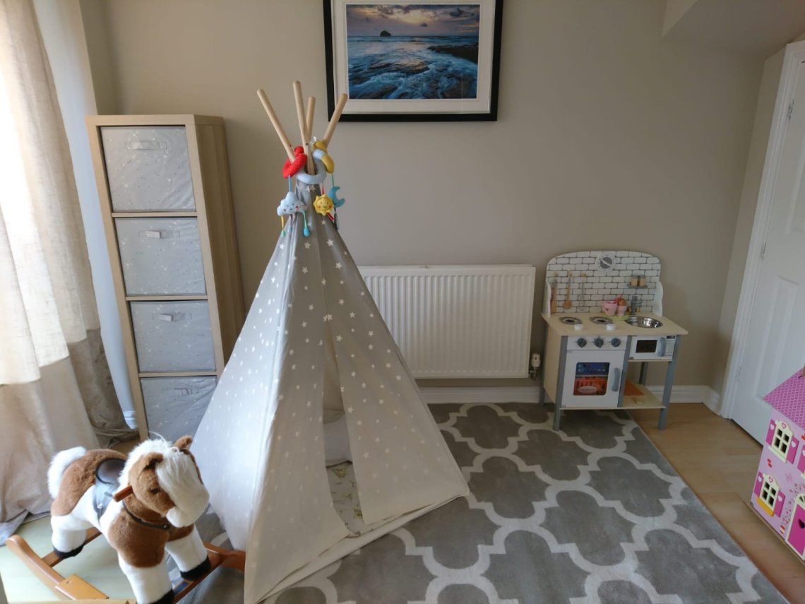 We’ve recently transformed our dining room into a playroom so that Bubba has somewhere safe and secure to play while we are downstairs.