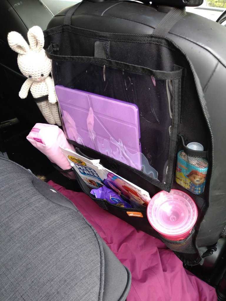 Hoping to avoid the repetitive “Are we there yet?” questions, we opted to sample the Dreambaby Car Back Seat Tablet Organiser.